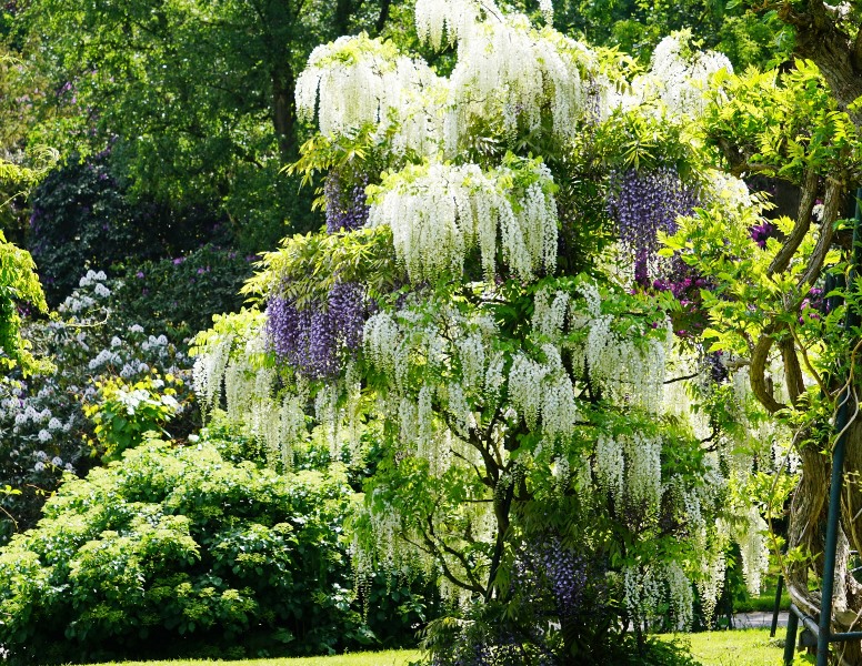 The view of natural white and purple wisteria for comparison.